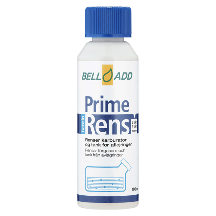 PrimeRens renser karburator og tank på mindre benzinmotorer for urenheder og aflejringer. Produktet fjerner vand i tanken. Ved at rense forlænges motorens levetid og ydeevnen bevares.
