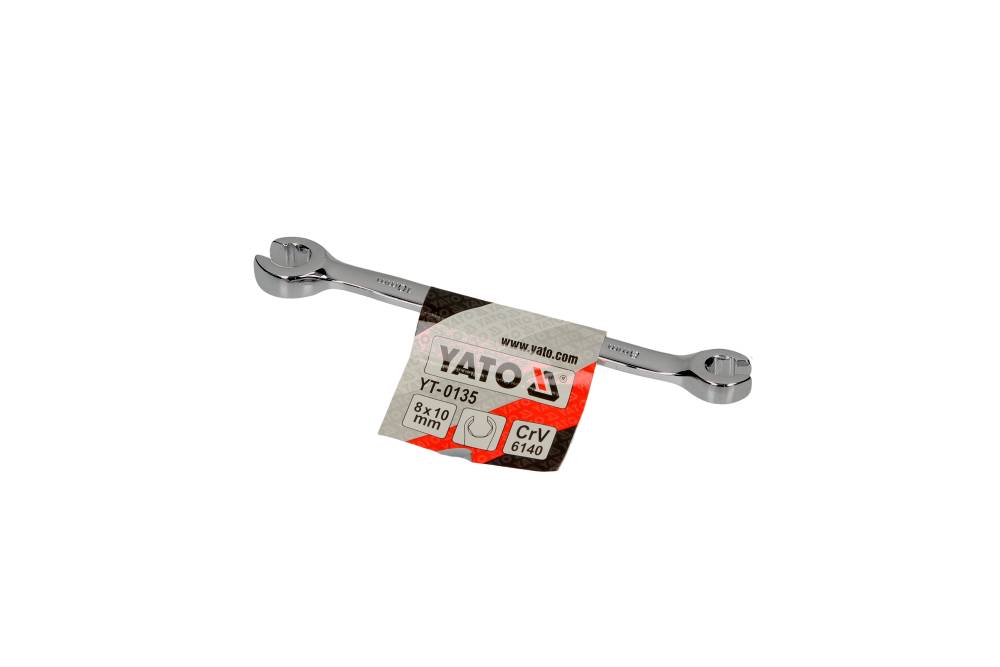 YATO halvåben fastnøgle i størrelsen 8x10 mm, designet specifikt til arbejde med bremserør og lignende applikationer i bilindustrien.