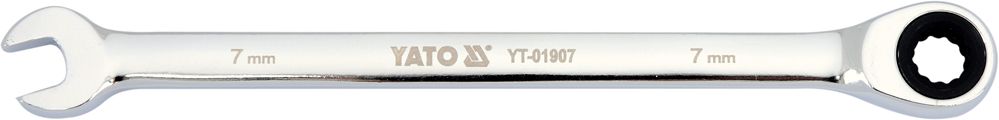 YATO YT-01907 er en professionel 7mm ringgaffelnøgle med skralde, designet til præcisionsarbejde, især på svært tilgængelige steder.
