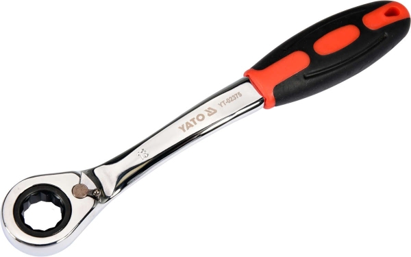 - Den 12-kantede ringende er let forskudt for at give et bedre og mere sikkert greb om møtrikker og bolte, hvilket minimerer risikoen for at beskadige dem.