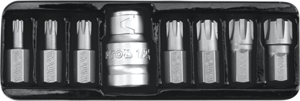 Professionelt 8-dels Yato sæt med RIBE-bits, designet til specialskruer inden for bil- og mekanikerarbejde.