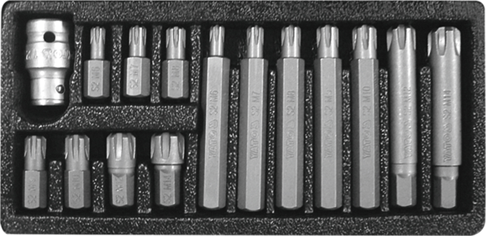 Professionelt bitsæt fra YATO, designet til specialopgaver inden for bil- og maskinreparationer med Ribe-skruer.