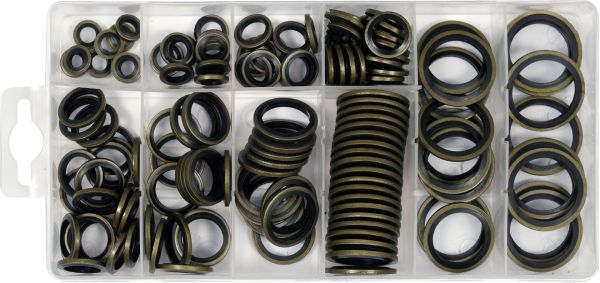 YATO sæt med 150 metal-gummi skiver, der sikrer pålidelig tætning og vibrationsdæmpning i krævende gevindforbindelser.