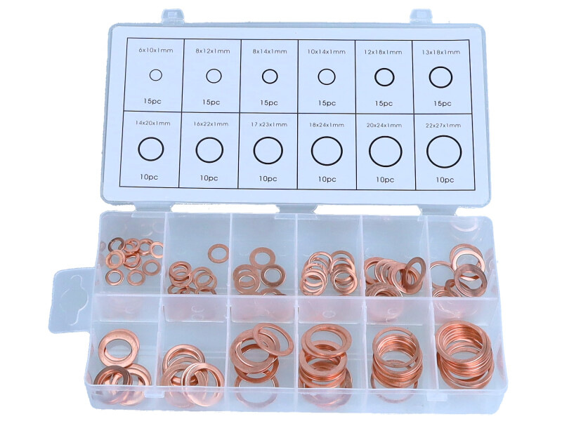 - Omfattende sæt med 120 skiver, der dækker de mest almindelige dimensioner til bundpropper i bilindustrien.