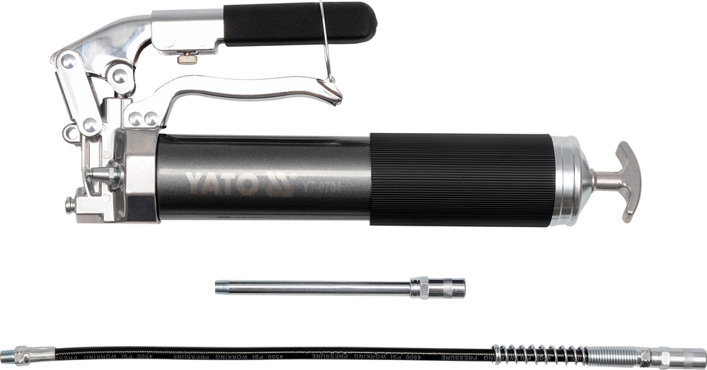 YATO YT-0704 er en robust og forstærket manuel fedtpresse, designet til præcis højtrykssmøring af mekaniske komponenter. Med sin solide konstruktion i aluminium er den et uundværligt værktøj for både professionelle og seriøse gør-det-selv-entusiaster. Den sikrer effektiv smøring af alt fra aksler og lejer til stifter og samlinger, hvilket forlænger levetiden på dit udstyr.