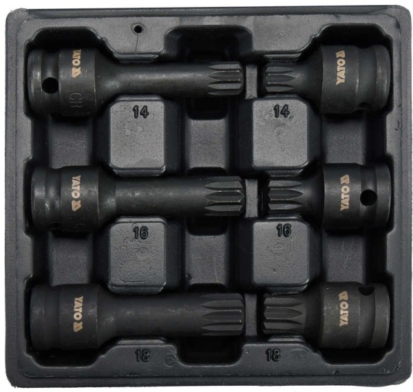 Dette YATO topnøglesæt med SPLINE (XZN) bits er designet til krævende opgaver med slagnøgler og har 1/2" firkantfatning.
