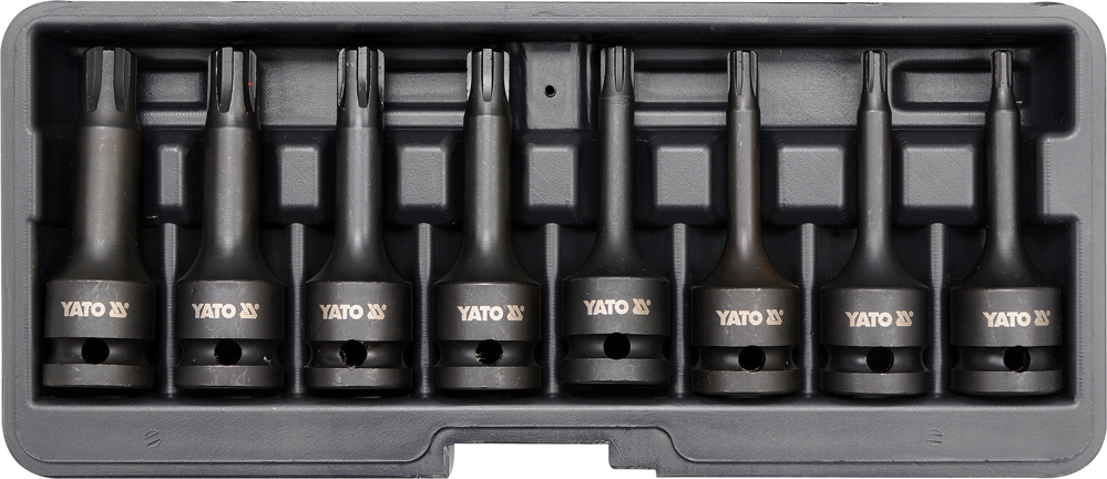 YATO YT-1068 er et professionelt slagtoppesæt med 8 dele, designet til RIBE-skruer i krævende værkstedsopgaver.