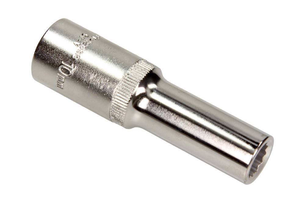 - Udstyret med et 1/2" firkantet drev og en 10 mm tolvkantet profil. Den samlede længde på 77 mm giver forbedret adgang til svært tilgængelige bolte.