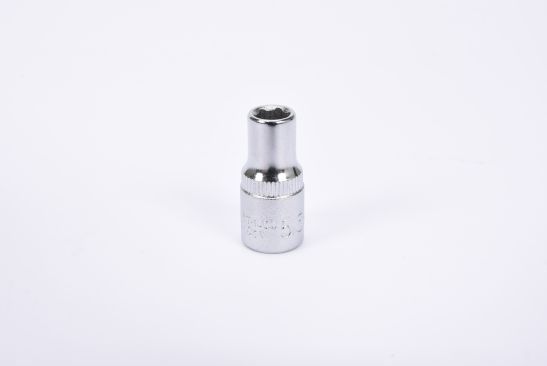 - Standard Tilslutning: Udstyret med en 1/4" firkantet tilslutning, som gør den kompatibel med de fleste standard skraldenøgler og forlængere.