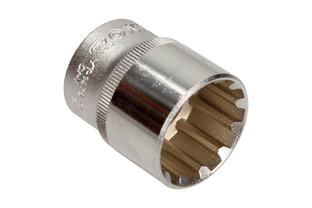 - Med en standard 1/2" firkantet tilslutning og en nøglestørrelse på 27 mm passer den til de mest almindelige skraldenøgler og momentnøgler.