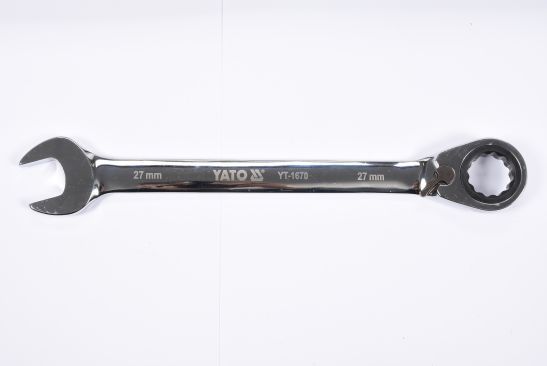 YATO YT-1670 er en robust 27 mm ringgaffelnøgle med skralde, designet til krævende opgaver. Fremstillet i krom-vanadium-stål for professionel holdbarhed.