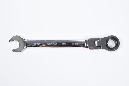 YATO YT-1679 er en professionel gaffel-ringnøgle med skralde og led, designet til præcisionsarbejde på svært tilgængelige steder.