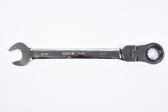 Yato YT-1690 er en robust ringgaffelnøgle med skralde og led, designet til alsidigt brug i værksteder og industri.
