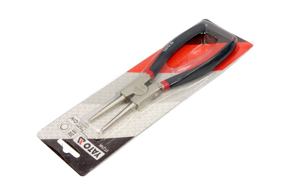 YATO YT-2144 er en robust, lige låseringstang til udvendige låseringe, fremstillet i holdbart krom-vanadium-stål for præcisionsarbejde.