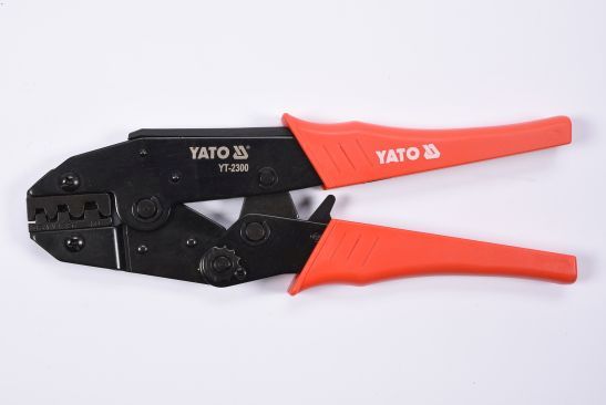 YATO YT-2300 er en professionel pressetang med skraldemekanisme, designet til præcis og pålidelig krympning af kabelsko på ledninger.