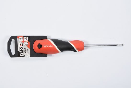 YATO flad skruetrækker, fremstillet af højkvalitets S2-stål for at sikre maksimal holdbarhed og ydeevne ved krævende opgaver.