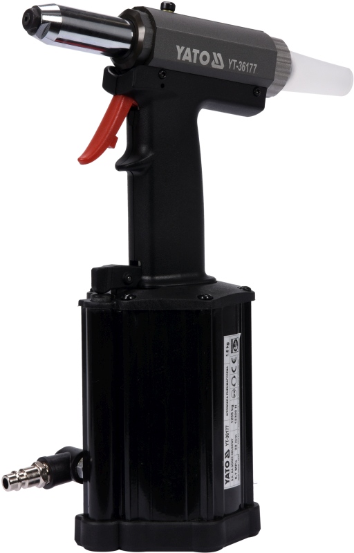 YATO YT-36177 er en kraftfuld pneumatisk nittepistol designet til permanent samling af metaldele med blindnitter.