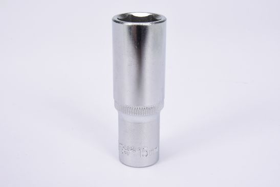 - Størrelse: 15 mm sekskantet top med en 3/8" (9.5 mm) fatning og en samlet længde på 63 mm.