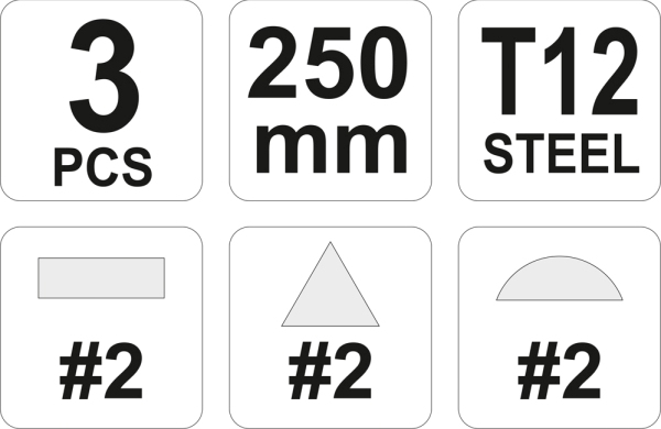 YATO YT-6237 er et professionelt filsæt med tre 250 mm file til effektiv bearbejdning af metal og plast.